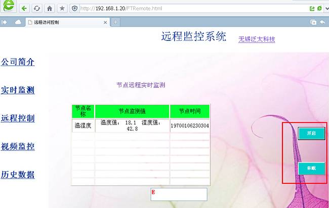 通過(guò)溫濕度傳感器、光線(xiàn)傳感器對環(huán)境狀態(tài)進(jìn)行實(shí)時(shí)監測,所有監測數據可以實(shí)時(shí)顯示在客戶(hù)端瀏覽器的頁(yè)面上。