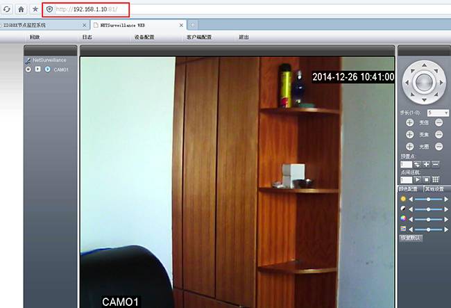 用戶(hù)可以在網(wǎng)頁(yè)瀏覽器中輸入IP地址“192.168.1.10:81”,通過(guò)視頻查看現場(chǎng)的狀況。