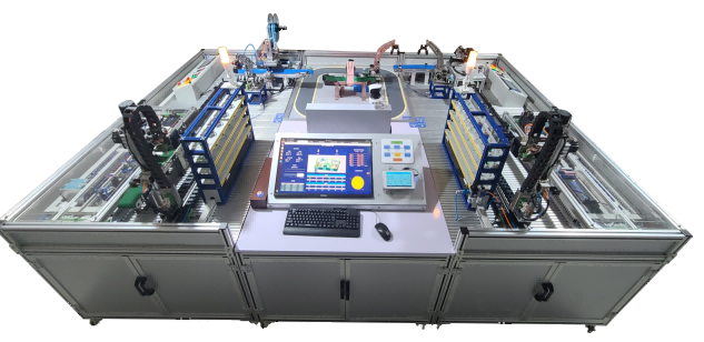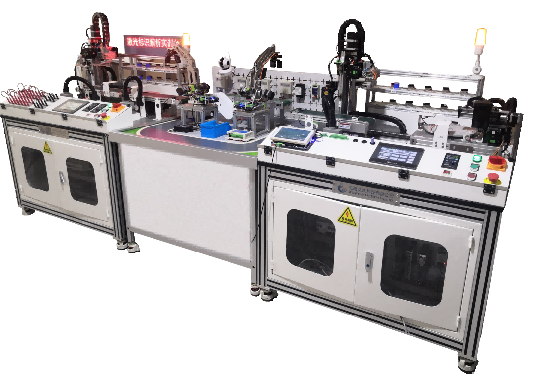 系統涵蓋立體倉庫堆垛機、加工轉臺、激光雕刻機、多自由度機器臂、AGV小車(chē)、機器視覺(jué)檢測裝置、流水線(xiàn)傳輸設備、RFID讀卡器、打碼裝置以及各種狀態(tài)監測傳感器,通過(guò)PLC電氣控制、嵌入式應用、AI機器視覺(jué)、工業(yè)現場(chǎng)總線(xiàn)和自組網(wǎng)通信等技術(shù),對工業(yè)設備進(jìn)行運動(dòng)控制、運行狀態(tài)動(dòng)態(tài)監測,實(shí)現出庫、上料、寫(xiě)碼、雕刻、傳輸、檢測、運輸、打碼、讀碼、打標、入庫等完整的工藝流程;通過(guò)智能網(wǎng)關(guān)和工業(yè)互聯(lián)網(wǎng)平臺,實(shí)現設備接入、數據采集、數據上云、產(chǎn)線(xiàn)管理、工件質(zhì)量分析、設備狀態(tài)監測、工件標識溯源、以及可視化應用。
