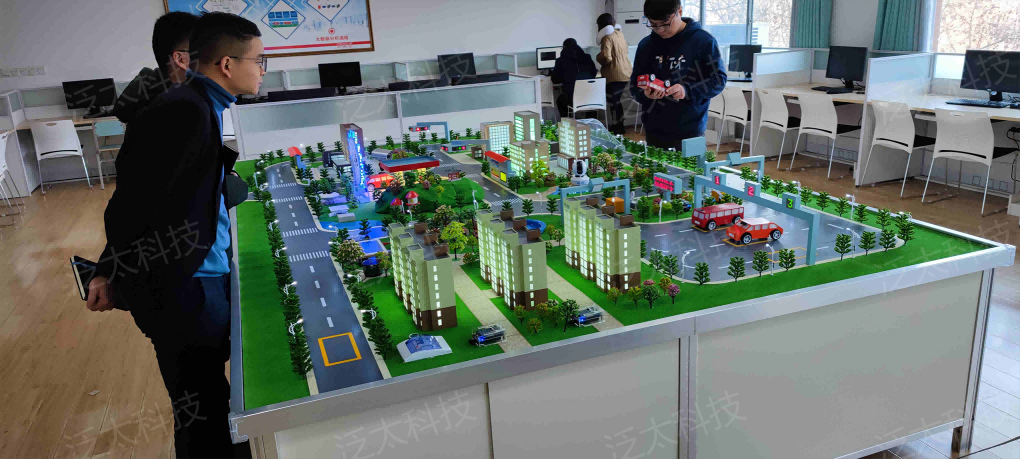 以城市道路交通為原型,融合了無(wú)線(xiàn)傳感器網(wǎng)絡(luò )、RFID射頻識別、圖像識別、無(wú)線(xiàn)通信、云服務(wù)、M2M中間件等物聯(lián)網(wǎng)先進(jìn)技術(shù),依托部署在交通沙盤(pán)中的智能車(chē)、紅綠燈、公交站、RFID設備、模擬攝像機、網(wǎng)絡(luò )攝像機、Android網(wǎng)關(guān)、圖像服務(wù)器等設備,實(shí)現智能車(chē)、紅綠燈控制、公交站自動(dòng)播報、路燈控制、智能停車(chē)場(chǎng)、違章抓拍、車(chē)牌識別、人流量檢測、公路災害智能預警等功能,為物聯(lián)網(wǎng)專(zhuān)業(yè)教學(xué)提供了一個(gè)完備的應用實(shí)訓系統。