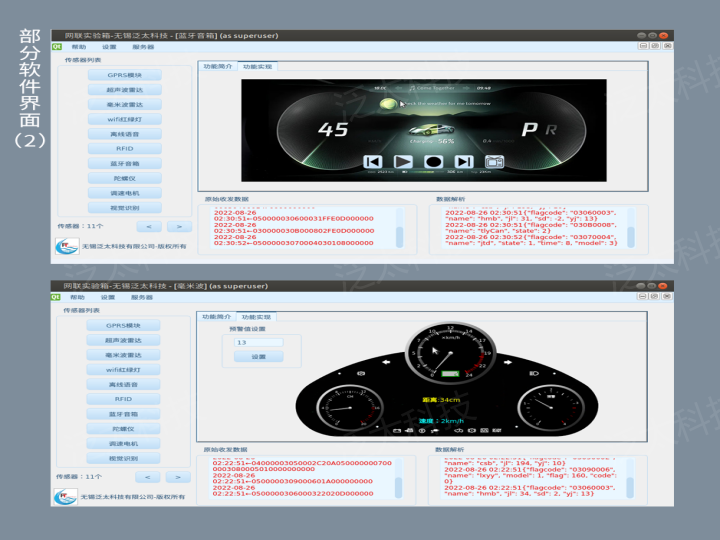 采用體驗型車(chē)載傳感器、M3嵌入式處理器、Ubuntu中控網(wǎng)關(guān),結合傳感器應用技術(shù)、嵌入式應用技術(shù)、CAN總線(xiàn)通信技術(shù)、網(wǎng)絡(luò )通信技術(shù)、Python圖形化應用開(kāi)發(fā)等,實(shí)現激光雷達掃描、毫米波雷達測距、超聲波測距、陀螺儀姿態(tài)檢測、藍牙音箱、語(yǔ)音識別、視覺(jué)識別、RFID刷卡解鎖、車(chē)輛行駛方式控制、衛星定位、車(chē)載網(wǎng)關(guān)展示、4G車(chē)載數據上云等功能。系統提供《智能網(wǎng)聯(lián)技術(shù)基礎》課程實(shí)驗案例,包括車(chē)載環(huán)境感知技術(shù)、智能人機交互技術(shù)、車(chē)載組網(wǎng)通信技術(shù)、控制執行技術(shù)、汽車(chē)信息交互技術(shù)。