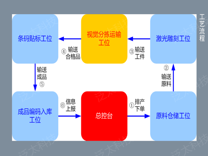 智能制造工業(yè)互聯(lián)網(wǎng)實(shí)訓沙盤(pán)(SeaIOT-EA-IM6-01),由原料倉儲工位、激光雕刻工位、視覺(jué)分揀運輸工位、包裝貼標工位、成品標識入庫工位、總控制臺共六個(gè)獨立工位拼裝組成,涵蓋立體庫位、堆垛機、加工流轉轉盤(pán)、激光雕刻機、多自由度機器臂、機器視覺(jué)檢測裝置、流水線(xiàn)傳送帶、二維碼氣動(dòng)打標裝置、RFID讀寫(xiě)模塊、條碼識讀模塊以及安裝在空壓機設備上的壓力傳感器、工廠(chǎng)環(huán)境監測傳感器、工業(yè)指示屏等工業(yè)常見(jiàn)設備,結合工業(yè)網(wǎng)關(guān)、邊緣服務(wù)器及工業(yè)互聯(lián)網(wǎng)平臺,通過(guò)工業(yè)現場(chǎng)總線(xiàn)和無(wú)線(xiàn)自組網(wǎng)通信技術(shù),實(shí)現取料、寫(xiě)碼、讀碼、加工、識別、分揀、運輸、貼標、寫(xiě)碼、讀碼、識讀二維碼、入庫等激光加工整體生產(chǎn)流程,達到工業(yè)生產(chǎn)跟蹤、產(chǎn)線(xiàn)生產(chǎn)數量統計、設備運行狀態(tài)監測、工件質(zhì)量統計等智慧化管理。